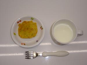 • 3時のおやつ納豆キャベツおやき、牛乳