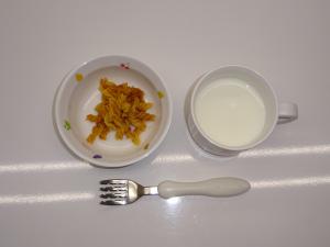 • 給食ご飯、炒り豆腐、キャベツと胡瓜の胡麻醤油和え、味噌汁、オレン