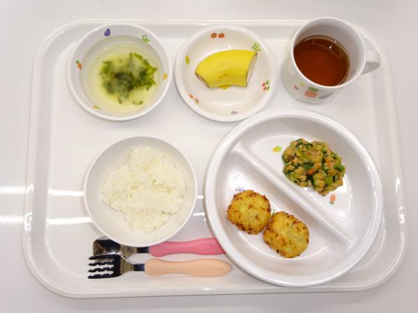 • 給食ご飯、豆腐の落とし揚げ、納豆和え、味噌汁、バナナ