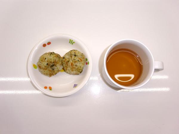 • 3時のおやつビビンバ風おにぎり、麦茶