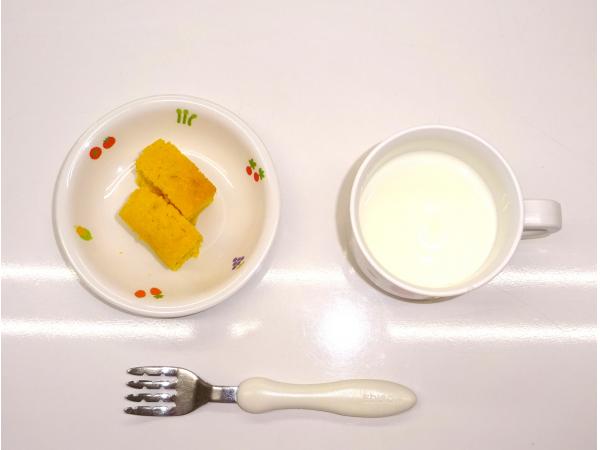 • 3時のおやつかぼちゃケーキ、牛乳