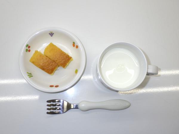 • 給食ご飯、鱈の胡麻味噌焼き、ほうれん草と油揚げのお浸し、すまし汁、バナナ