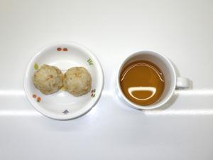 • 3時のおやつしらすおにぎり、麦茶